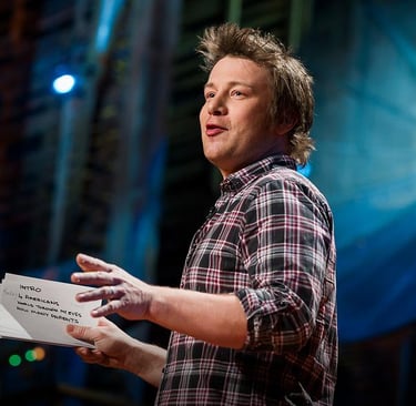 Klausydamasis pranešimų konferencijose kartais prisimenu virtuvės šefą Jamie Oliverį. Esu tikras, kad iš jo būtų smagu ir vertinga mokytis ruošti maistą. Bet iš šio žmogaus galima pasimokyti ir dar kai ko: pradėti kalbą taip, kad auditorija kaipmat pastatytų ausis ir gaudytų kiekvieną tolesnį žodį.
